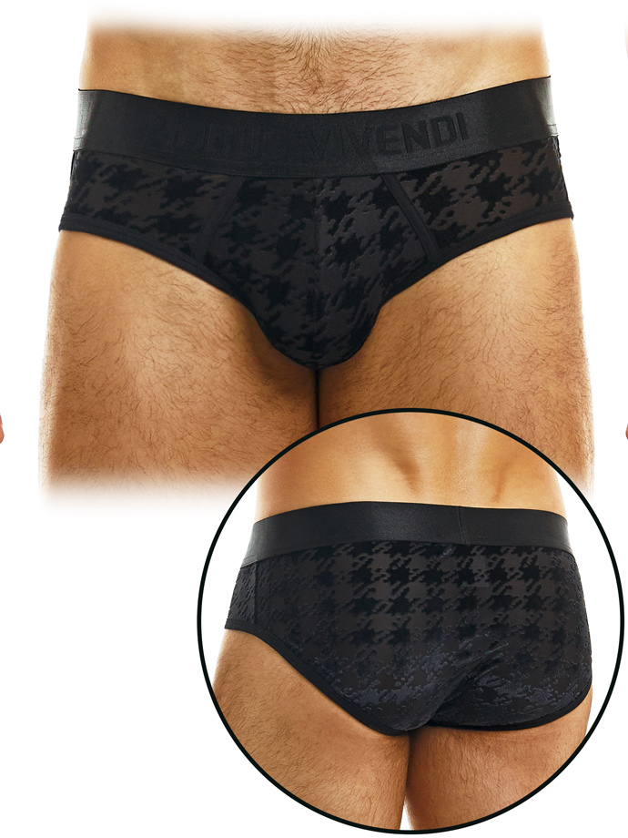 Le slip Pied De Poule Classic de Modus Vivendi allie de manière unique élégance et sensualité. Ce slip a été conçu pour mettre tes atouts en valeur tout en t'offrant une sensation de liberté et de confort. La finition haut de gamme des matières de luxe comme le velours et le mesh ainsi que son design raffiné renforcent ta confiance en toi, car tu sens immédiatement à quel point tu es croquant dans ce slip.