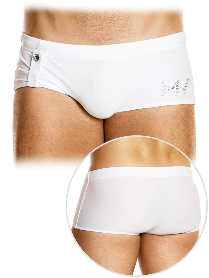 La bande latérale caractéristique est dotée d'une grosse pierre de cristal supplémentaire pour une apparence étincelante. Le short de bain est fabriqué dans un tissu extensible à séchage rapide qui s'adapte à votre corps comme une seconde peau. Cette matière high-tech garantit un ajustement parfait, une excellente conservation de la forme et un confort durable.