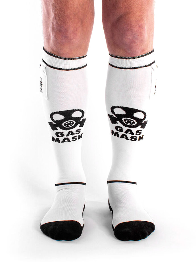 Portez ces chaussettes hautes "Gas Mask" de Brutus en blanc et montrez votre côté sexy et fétichiste ainsi que votre préférence pour les activités amusantes. Fabriquées au Portugal par Brutus, les chaussettes Party Socks sont conçues pour s'adapter à toutes les tailles. Les chaussettes sont fabriquées avec des matériaux de haute qualité, combinant respiration, élasticité et tissu doux pour un port des plus confortables. Sur le côté de chaque chaussette se trouve une petite poche où vous pouvez ranger poppers, préservatifs, petites fioles de lubrifiant et autres accessoires amusants. Les chaussettes sont disponibles en plusieurs couleurs et motifs pour que vous trouviez celui qui vous convient le mieux pour vous exprimer. Détails du produit :✓ Chaussettes fetish sexy ✓ Hauteur genou ✓ Matière haute qualité ✓ Tissu doux, respirant et élastique ✓ Avec deux poches latérales ✓ Fabriqué au Portugal Entretien : lavage en machine jusqu'à 30°C, ne pas passer au sèche-linge, ne pas utiliser de javel, ne pas repasser, ne pas nettoyer à sec Matière : 80% polyamide, 17% coton, 3% élasthane Couleur : blanc, noirTaille : taille unique