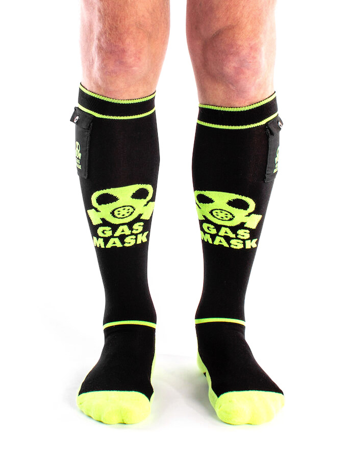 Mettez-vous dans l'ambiance pour une action coquine avec ces chaussettes hautes "Gas Mask" de Brutus en noir et jaune néon et exprimez votre préférence personnelle pour les activités amusantes.Fabriquées au Portugal par Brutus, les chaussettes de soirée fétichistes sont conçues pour s'adapter à toutes les tailles. Les chaussettes sont fabriquées avec des matériaux de haute qualité, combinant respiration, élasticité et tissu doux pour un port des plus confortables. Sur le côté de chaque chaussette se trouve une petite poche où vous pouvez ranger poppers, préservatifs, petites fioles de lubrifiant et autres accessoires amusants. Les chaussettes sont disponibles en plusieurs couleurs et motifs pour que vous trouviez celui qui vous convient le mieux pour vous exprimer. Détails du produit :✓ Chaussettes fetish sexy ✓ Hauteur genou ✓ Matière haute qualité ✓ Tissu doux, respirant et élastique ✓ Avec deux poches latérales ✓ Fabriqué au Portugal Entretien : lavage en machine jusqu'à 30°C, ne pas passer au sèche-linge, ne pas utiliser de javel, ne pas repasser, ne pas nettoyer à sec Matière : 80% polyamide, 17% coton, 3% élasthane Couleur : noir, jaune néonTaille : taille unique