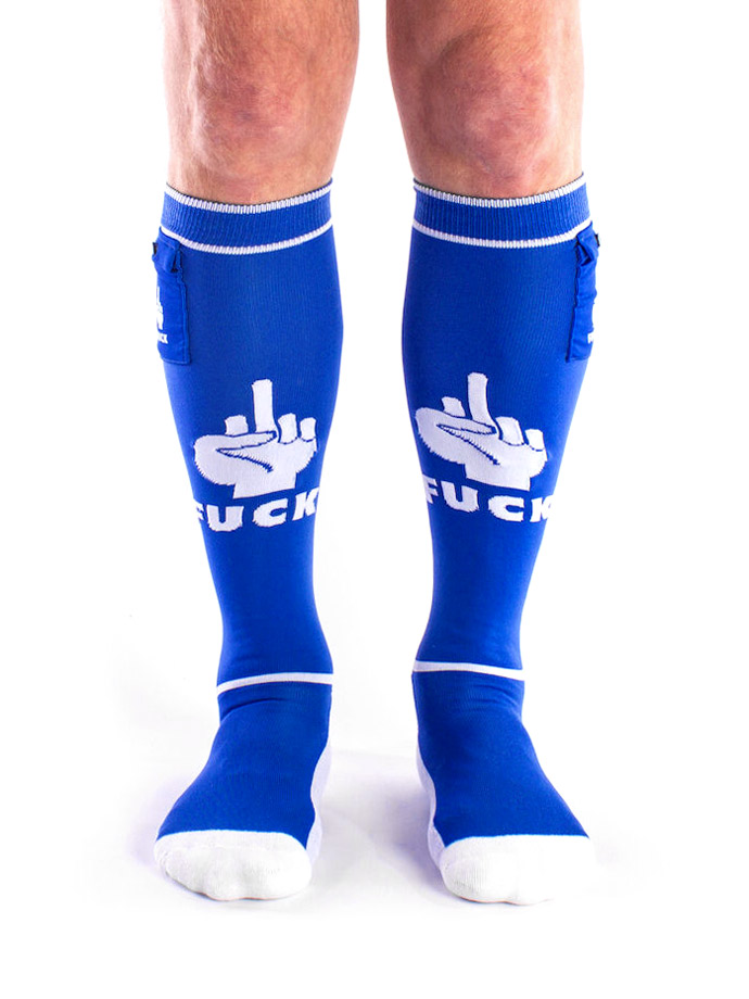 Montrez votre amour pour la scène fétichiste avec les nouvelles chaussettes "Fuck" Party Socks de Brutus, de couleur bleu royal, parfaites pour n'importe quelle tenue et permettant aux gens de savoir que vous aimez le sexe oral si vous respectez le Hanky codeFabriquées au Portugal par Brutus, les chaussettes de soirée fétichistes sont conçues pour s'adapter à toutes les tailles. Les chaussettes sont fabriquées avec des matériaux de haute qualité, combinant respiration, élasticité et tissu doux pour un port des plus confortables. Sur le côté de chaque chaussette se trouve une petite poche où vous pouvez ranger poppers, préservatifs, petites fioles de lubrifiant et autres accessoires amusants. Les chaussettes sont disponibles en plusieurs couleurs et motifs pour que vous trouviez celui qui vous convient le mieux pour vous exprimer. Détails du produit :✓ Chaussettes fetish sexy ✓ Hauteur genou ✓ Matière haute qualité ✓ Tissu doux, respirant et élastique ✓ Avec deux poches latérales ✓ Fabriqué au Portugal Entretien : lavage en machine jusqu'à 30°C, ne pas passer au sèche-linge, ne pas utiliser de javel, ne pas repasser, ne pas nettoyer à sec Matière : 80% polyamide, 17% coton, 3% élasthane Couleur : bleu, blancTaille : taille unique