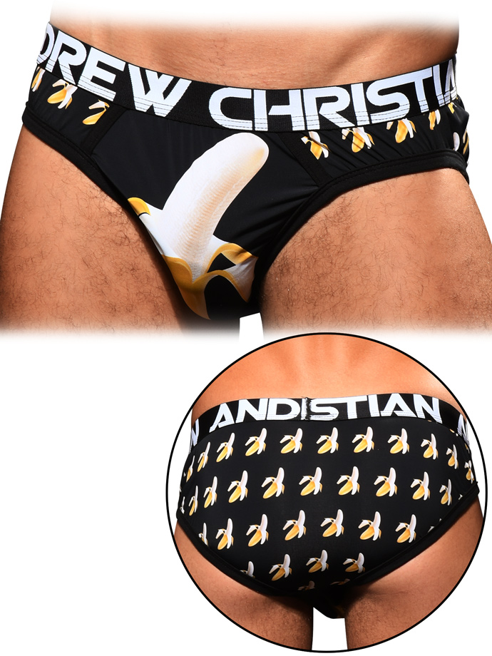 Pour tous ceux qui veulent briser la glace avec un sous-vêtement incroyablement drôle, le Big Banana Brief d'Andrew Christian est ce qu'il vous faut. Ce slip a tout pour plaire : des couleurs étonnantes et un motif de banane sur le devant au bon endroit, des bretelles confortables et une ceinture amincissante ainsi qu'un tissu doux et léger qui vous donnera l'impression de ne rien porter du tout. Avec suffisamment d'espace à l'avant, la technologie Almost Naked permet un confort maximal pour vos parties intimes et tout le monde aura envie de regarder votre banane ! Détails du produit :✓ Style en édition limitée qui ne sera plus jamais fabriqué ✓ Slip sexy remis au goût du jour avec humour ✓ Avec un motif amusant de banane ✓ Almost Naked - poche frontale anatomiquement correcte ✓ Couleurs de haut contrastes ✓ Avec ceinture amincissante ✓ L'impression de ne rien porter du tout ✓ Conçu dans le studio de design d'Andrew Christian à Los Angeles, en Californie Matière : 90% polyamide, 10% élasthane Couleur : noir Entretien : lavage en machine à 30°C max., sans javel, passer au sèche-linge à basse température, repasser à basse température